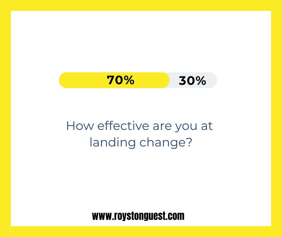 McKinsey Consulting Group reports that 70% of all change management efforts do not meet their intended outcomes, primarily due to employee resistance and a lack of management support. When people genuinely invest in change, it is 30% more likely to be successful. To be part of the successful 30% starts right at the beginning.