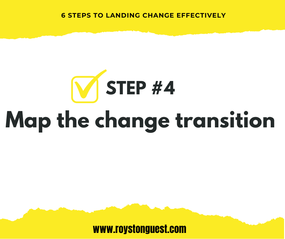 Little attention is paid to mapping the transition with their people from the current reality to the desired end state, effectively bringing their people along on the journey. Instead, they jump straight into implementation and expect to realise the benefits. The levels of resistance from their people have increased another notch.